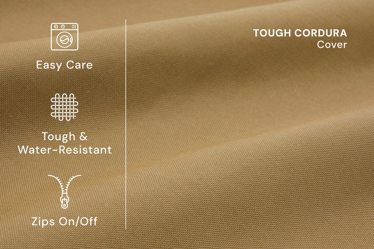 Cordura: Tough, water-resistant fabric built to withstand heavy use, scratches, and messy adventures.